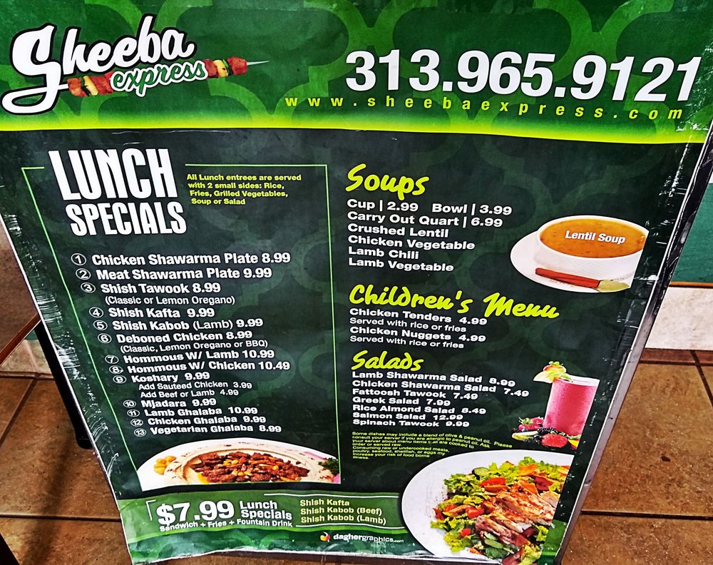Sheeba Express, located at 1366 W Fort St in Detroit, MI, is a standout in the world of Mediterranean sandwiches. The menu boasts delectable options like Chicken Cream Chops, Chicken Shawarma Plate, and David Basha meatballs. Their salads, such as the Chicken Shawarma Salad and Fatoosh Feta Salad, are fresh and packed with flavor. The soups offer a comforting start to any meal with options like Chicken Vegetable Soup and Crushed Lentil Soup. Customers rave about the friendly service and generous portion sizes, making Sheeba Express a must-visit for those craving authentic Mediterranean cuisine. Whether you're a fan of shawarma or looking to try something new like Shrimp Galabah, this classy and welcoming establishment is sure to leave you satisfied. Don't miss out on their Happy Hour Specials and catering options for a taste of Lebanese goodness.